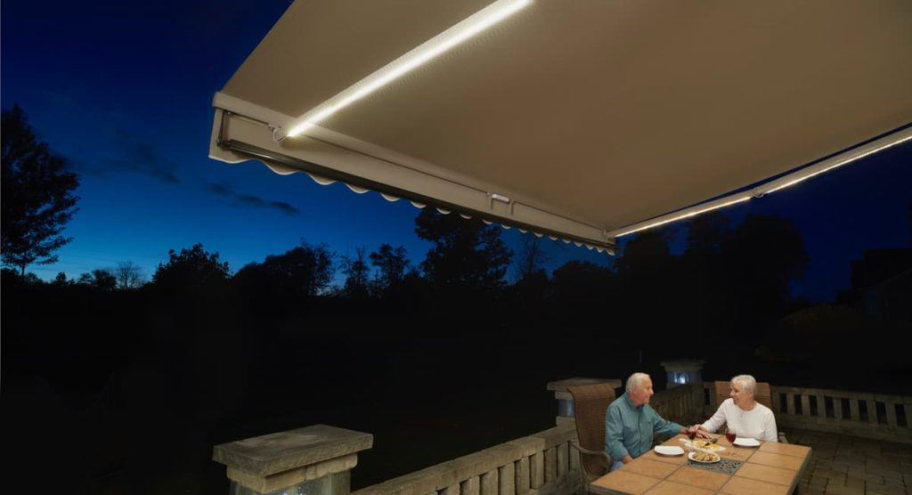Harrison takes pride in its key premium feature: built-in dimmable LED lights, available on all our awnings as a standard offering. These smartly integrated lights are ingeniously embedded into the arms of our awnings, granting users complete control over the brightness with a simple remote.